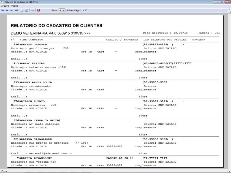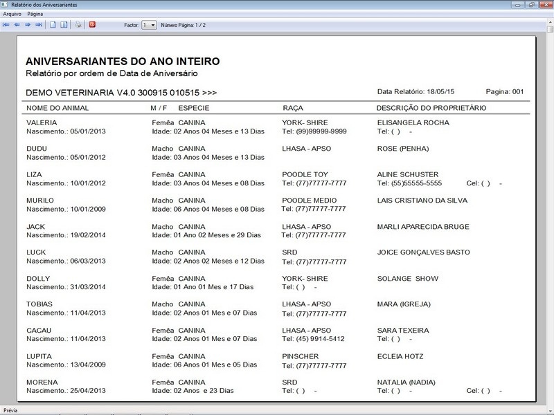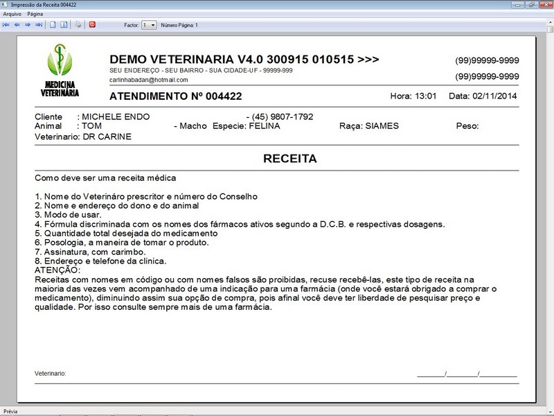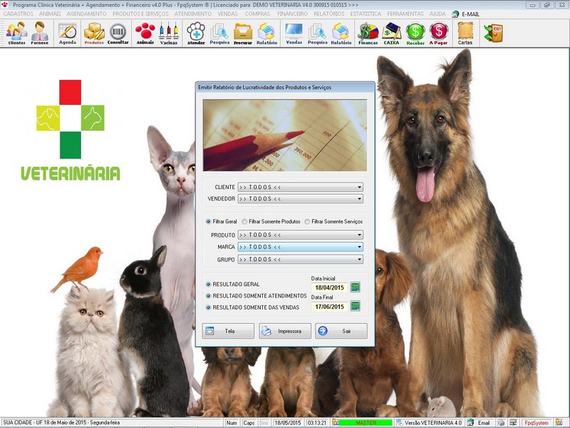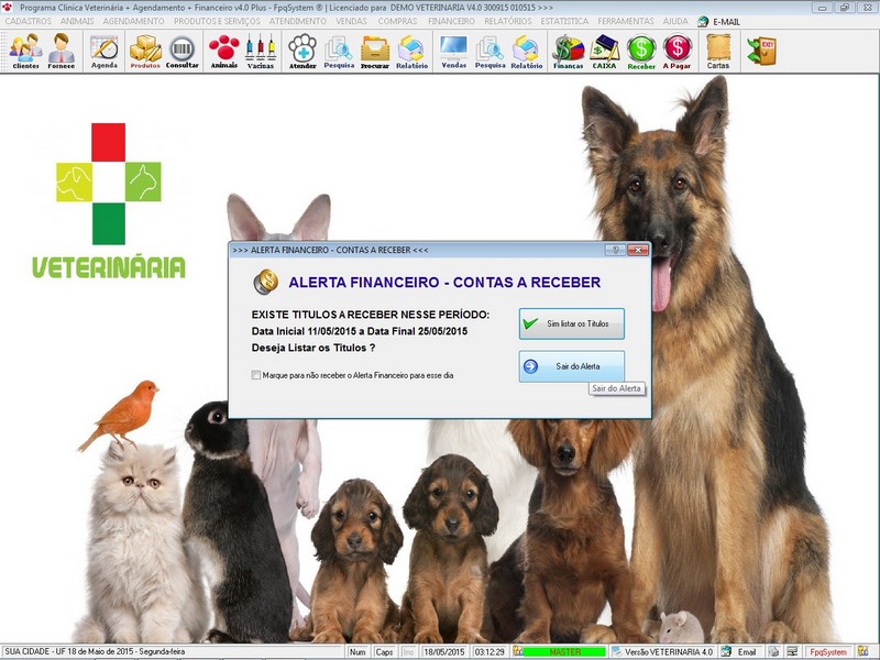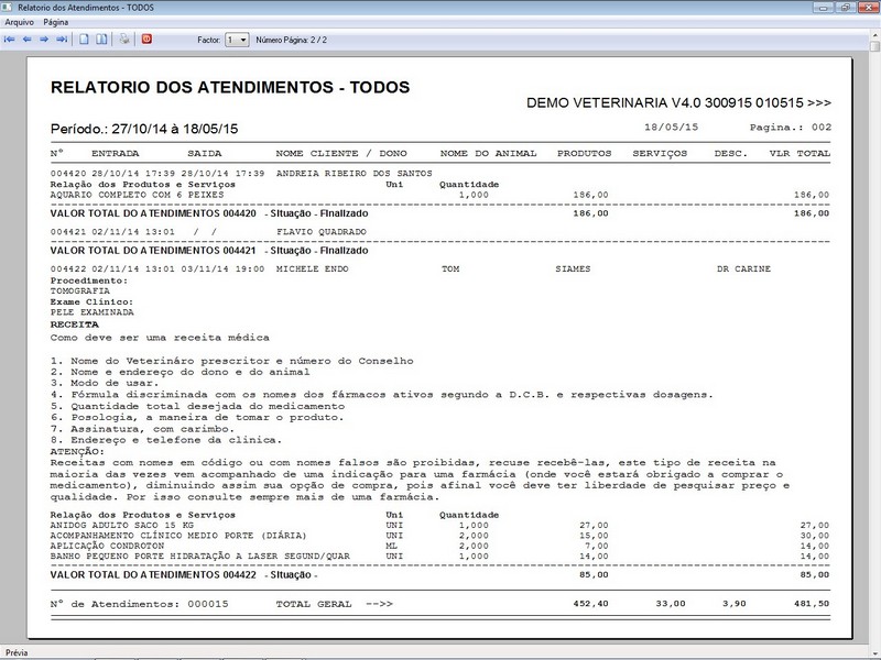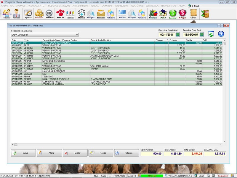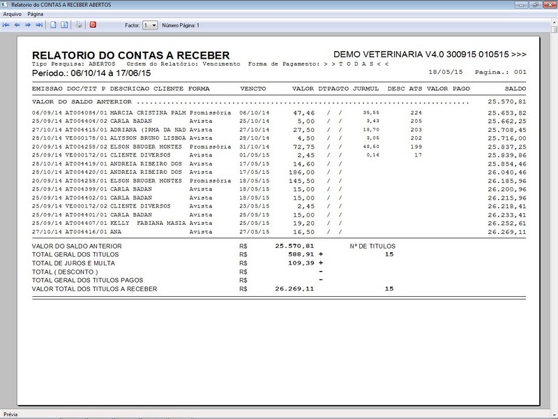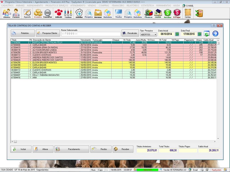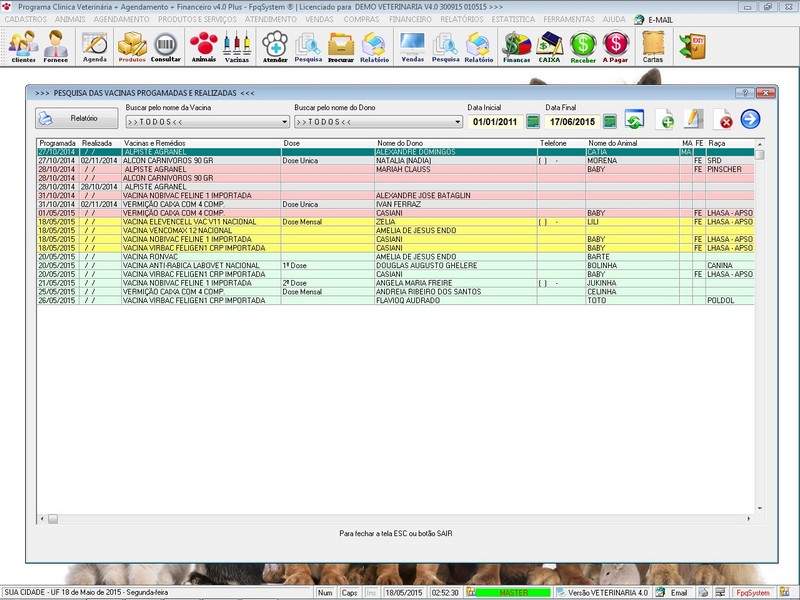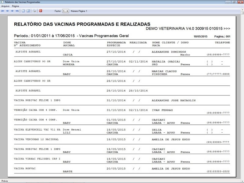 Receber / Recibo de Pagamento / Controle de Vacinas / Relatório das Vacinas