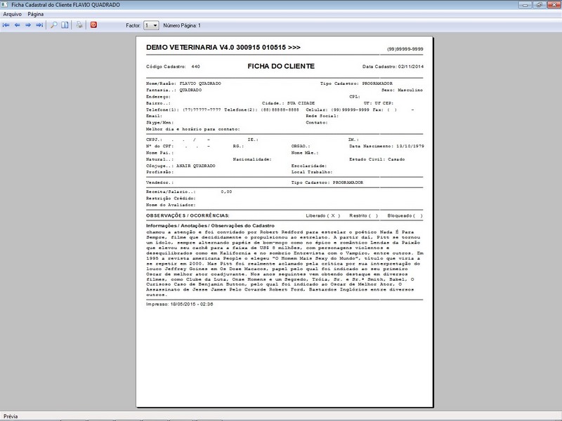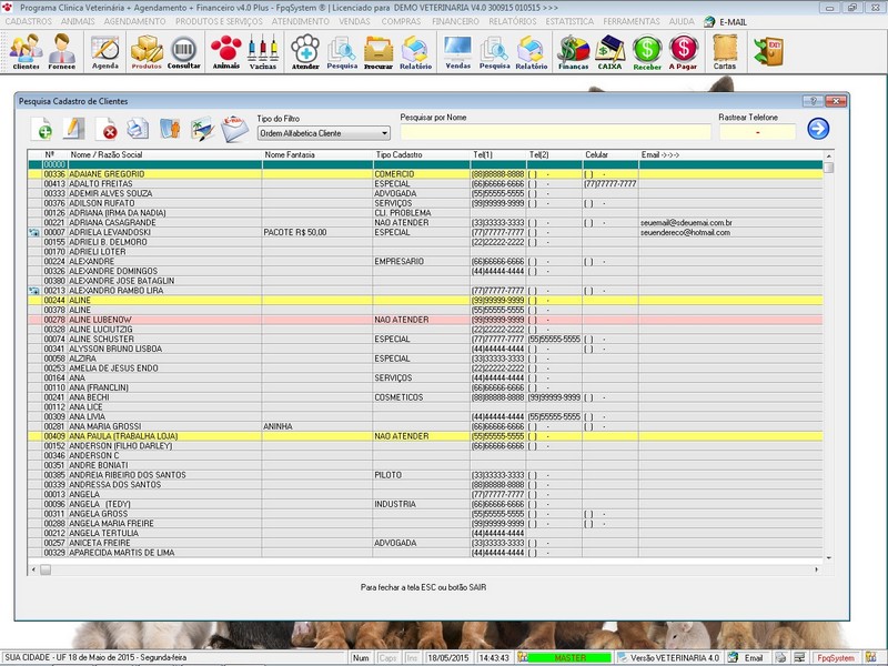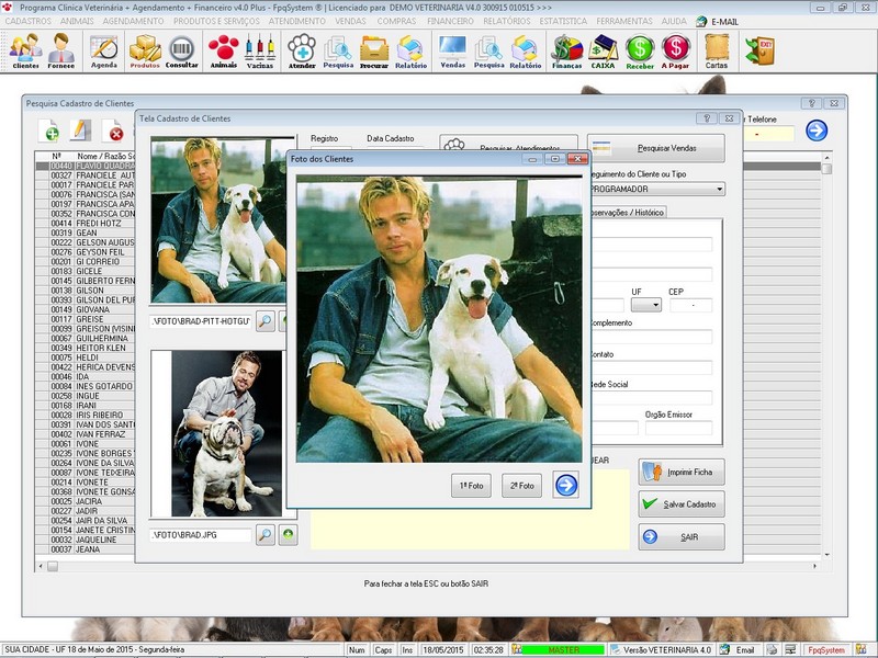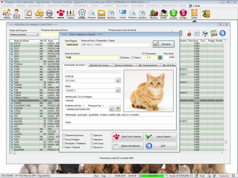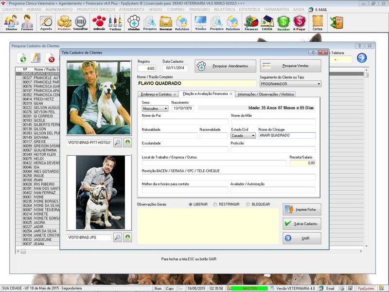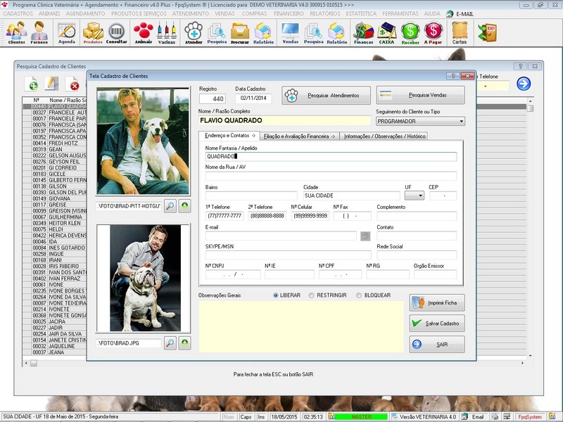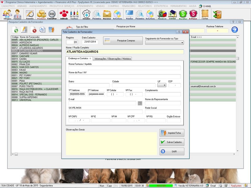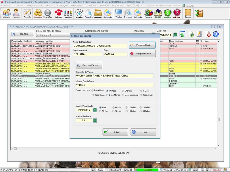 / Clientes / Fornecedores / Atendentes / Controle de Vacinas / Cadastro