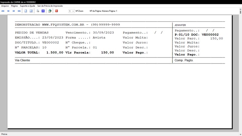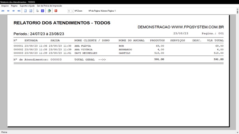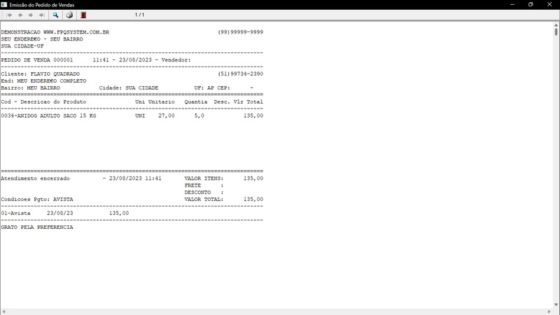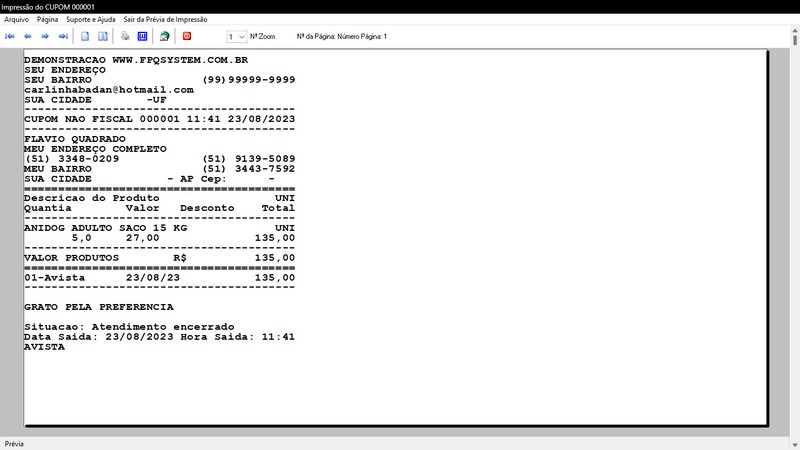 na impressão do Atendimento