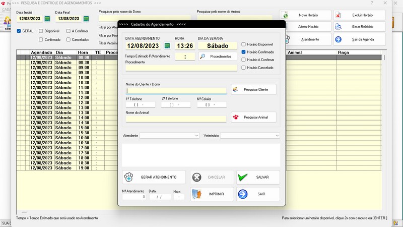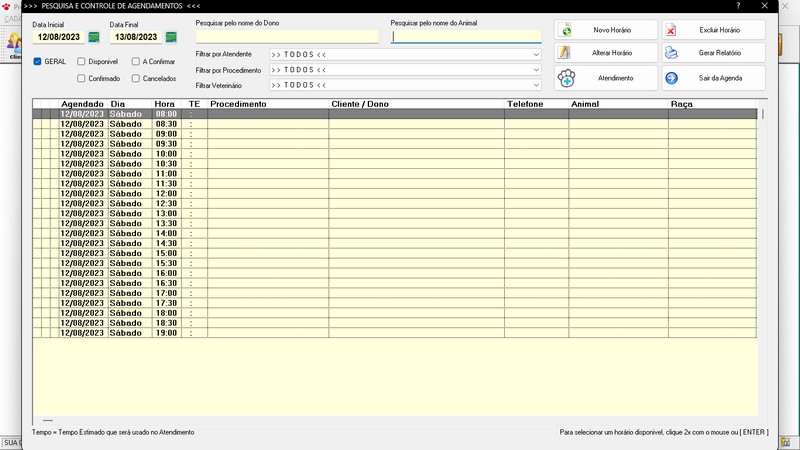 de Agendamento / Relatório de Agendamentos / Relatório dos