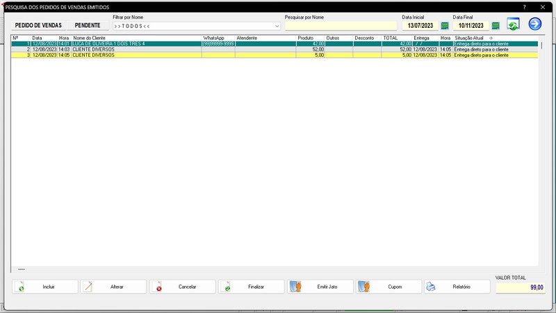 Atendimentos / Relatório de Comissão / Vendas no Balcão / Relatório de